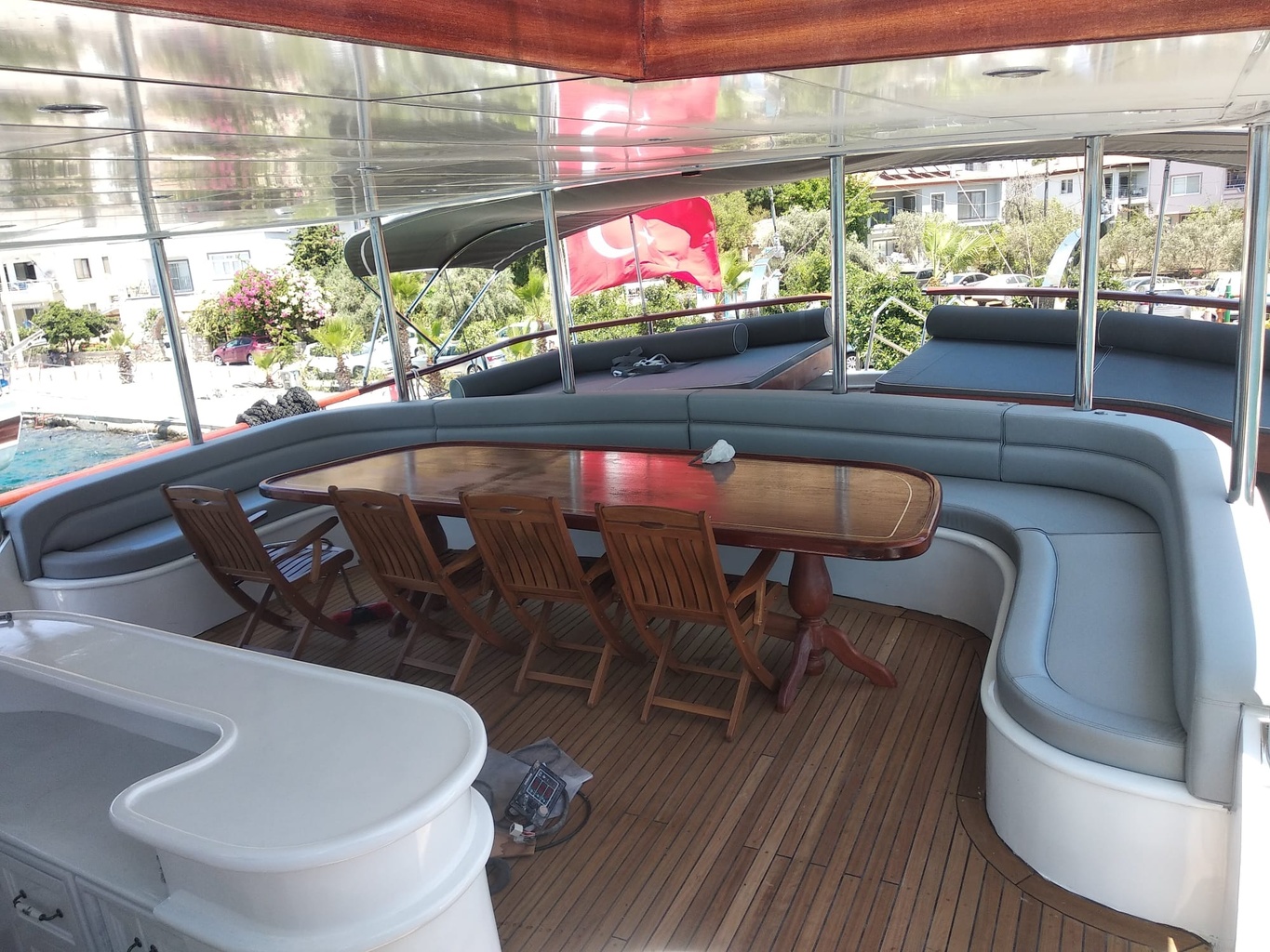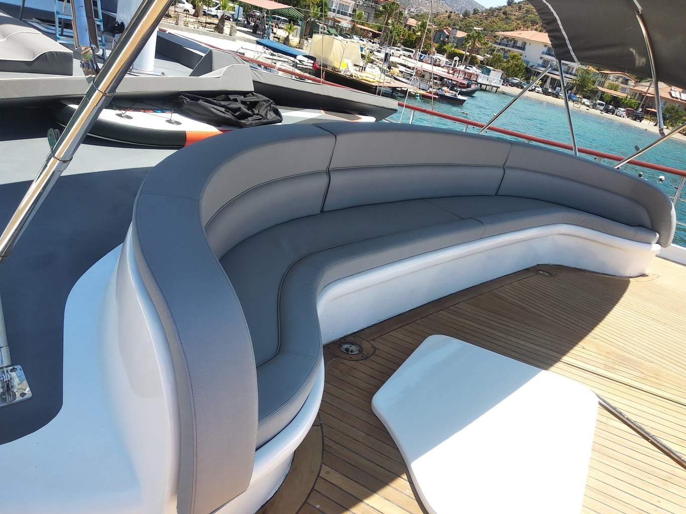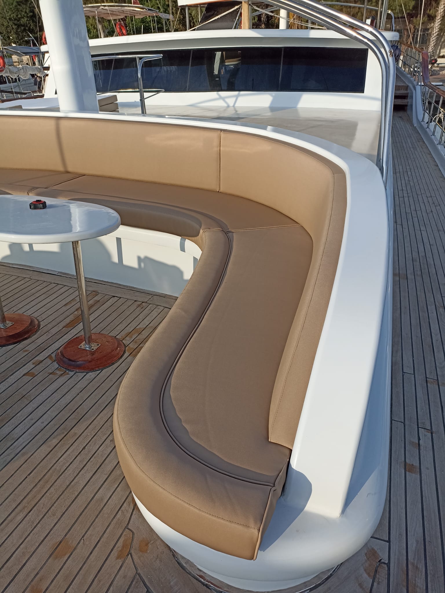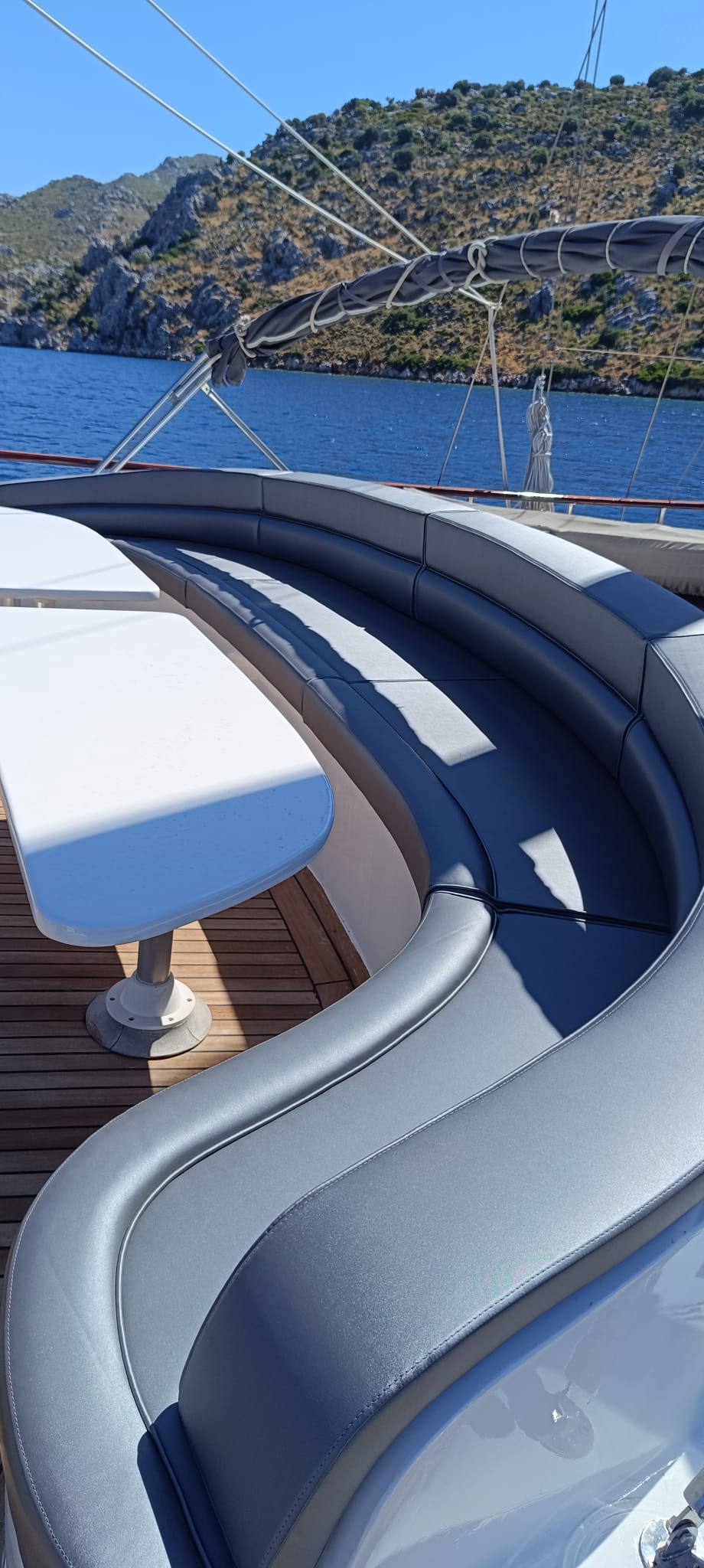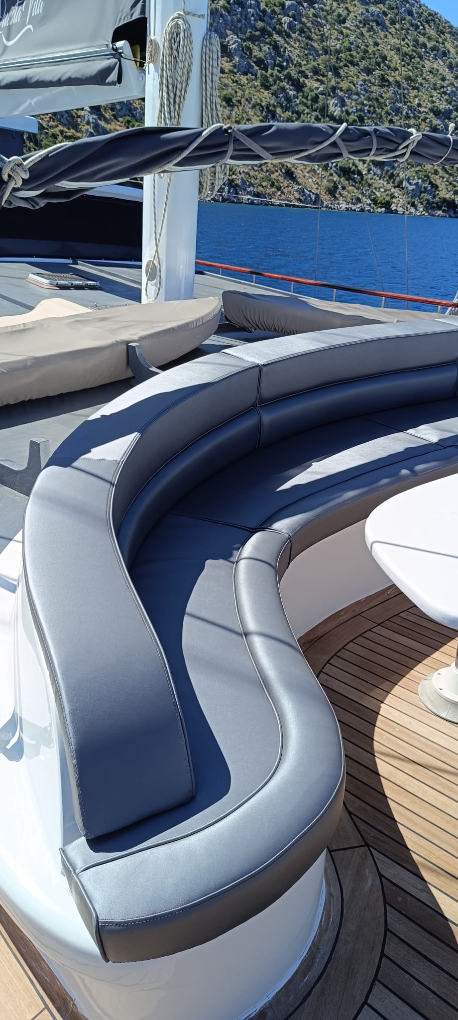 Questa Vita teknesinin yelkeni, oturma grupları, yatak odası, döşemeleri tarafımızca yapılmıştır.