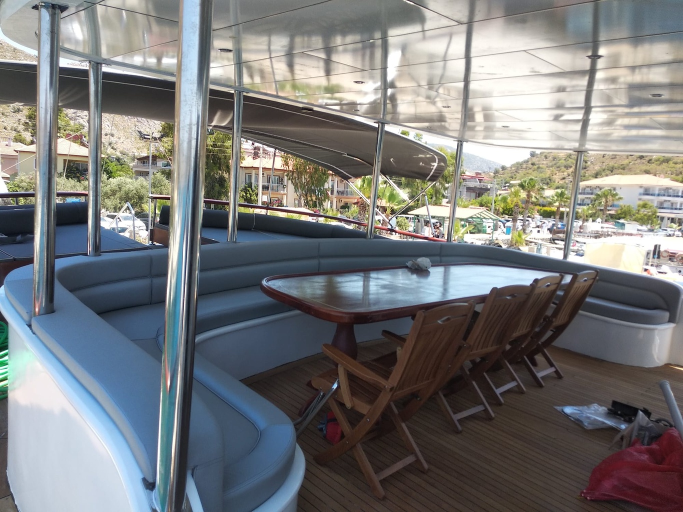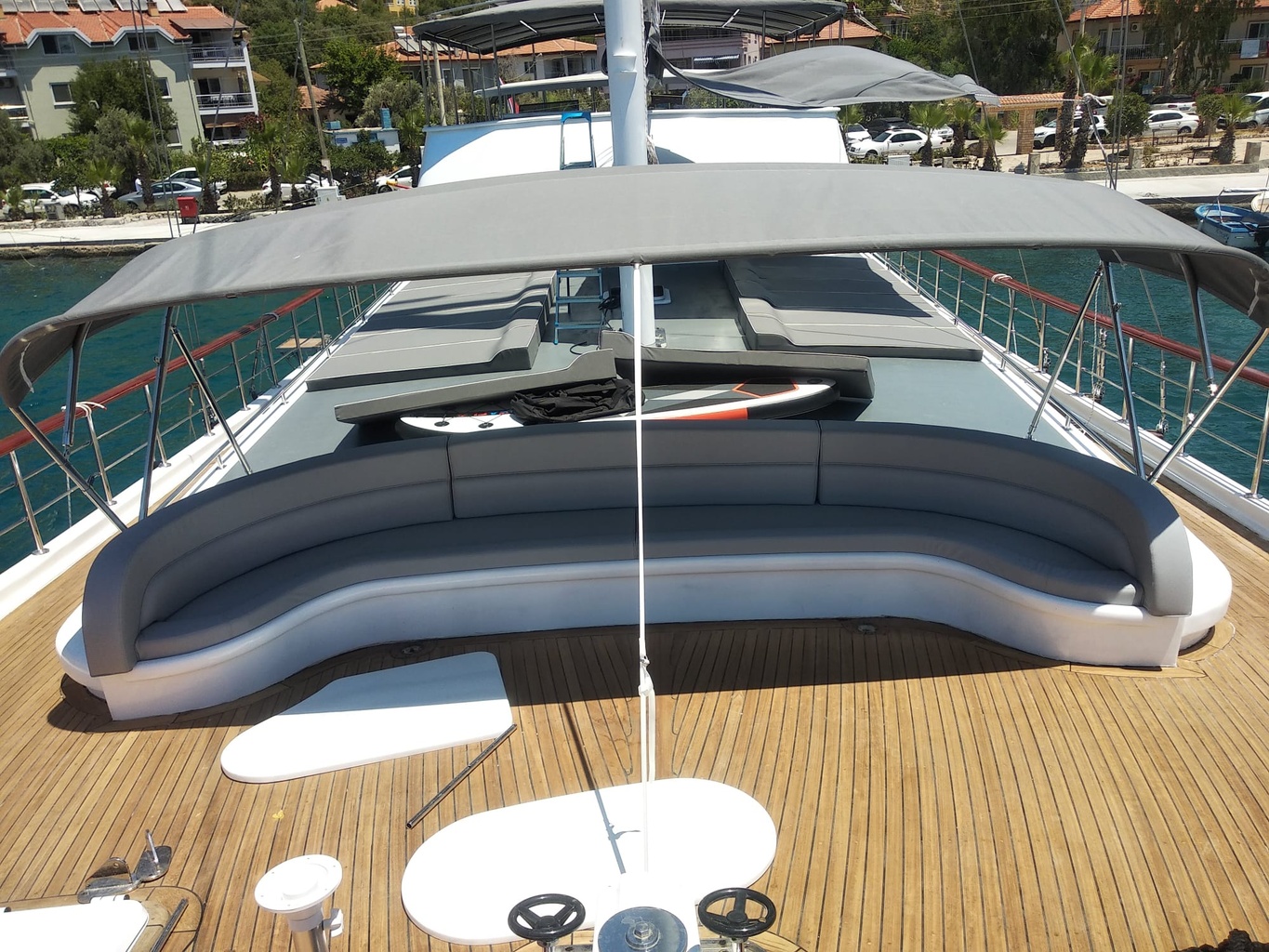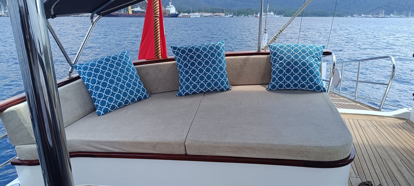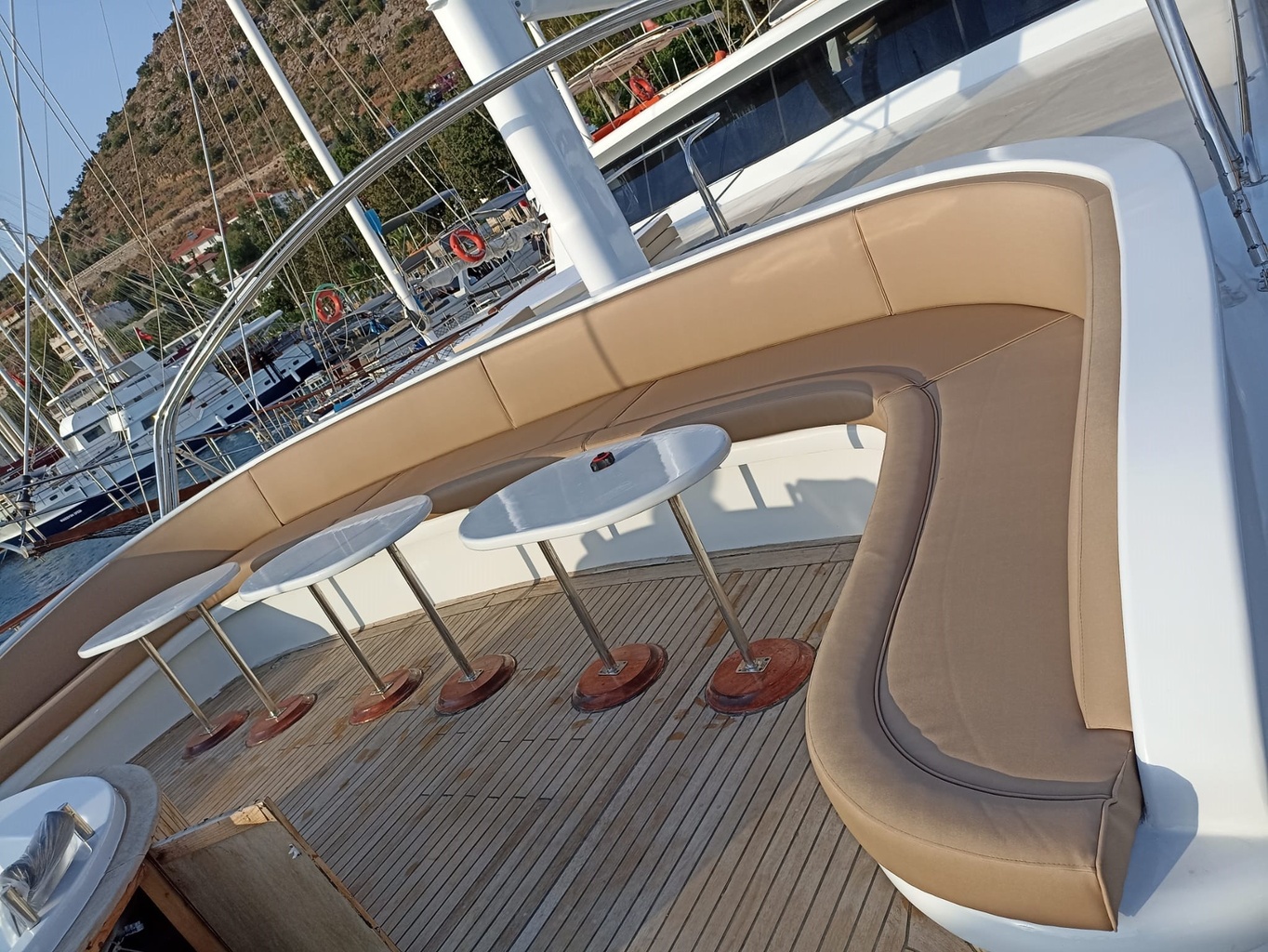 Questa Vita teknesinin yelkeni, oturma grupları, yatak odası, döşemeleri tarafımızca yapılmıştır.