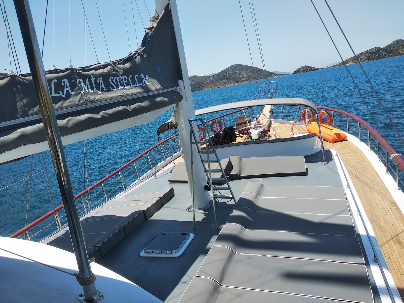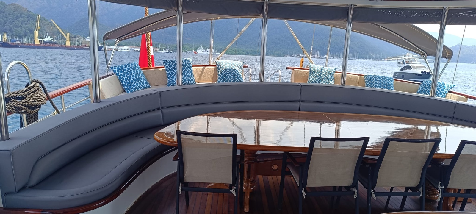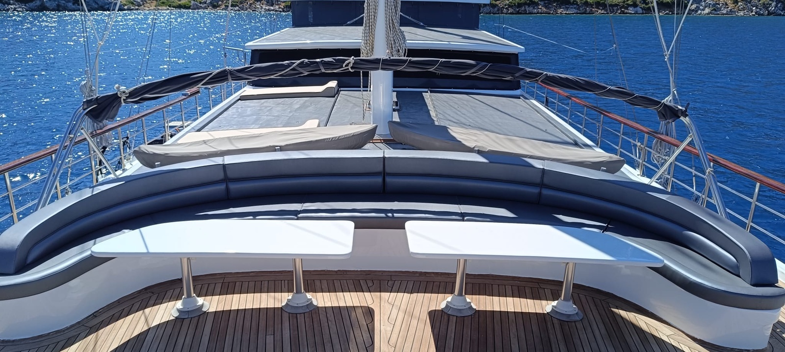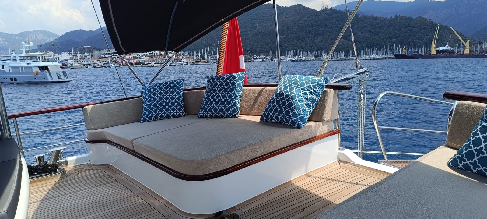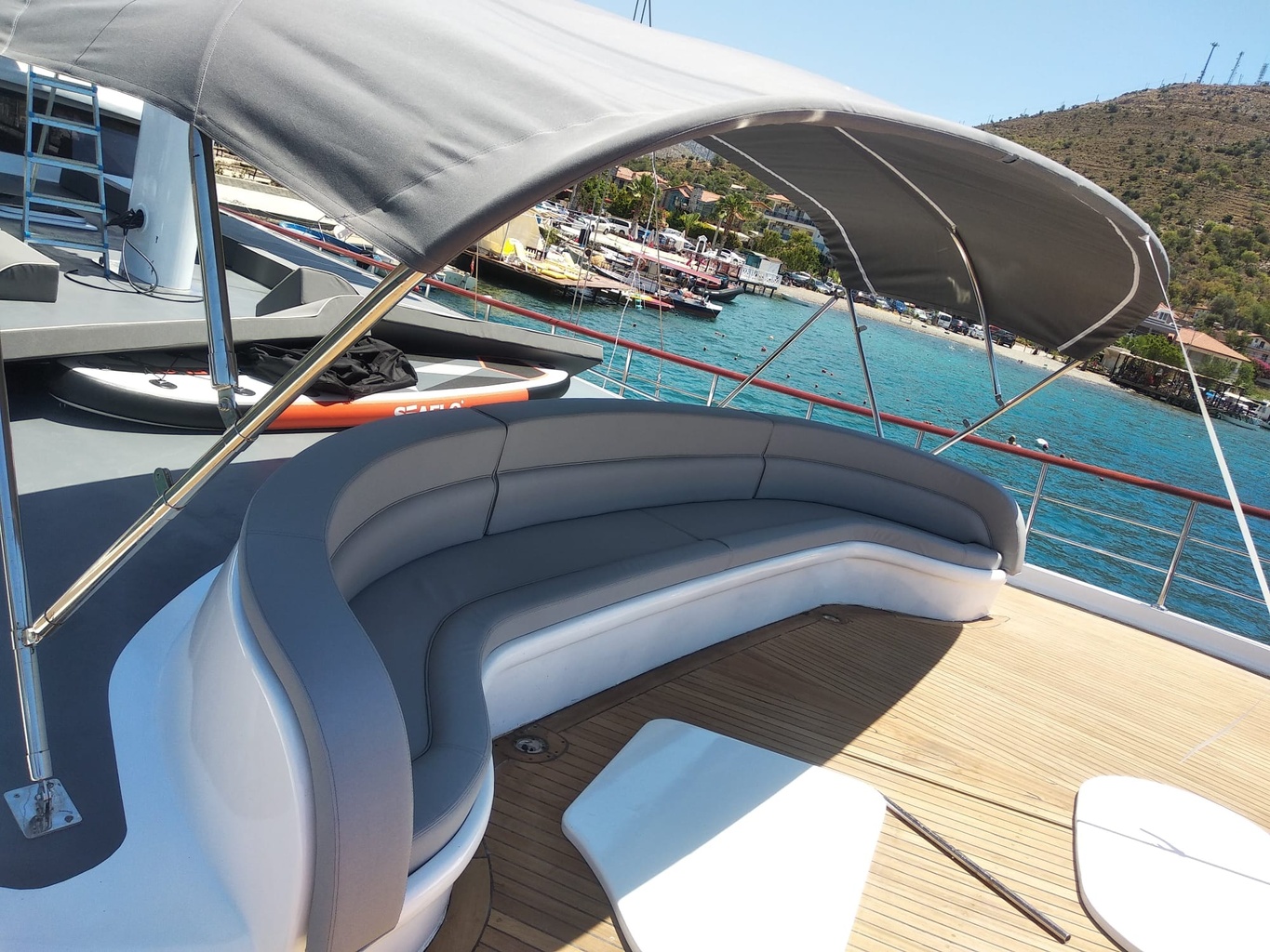 Questa Vita teknesinin yelkeni, oturma grupları, yatak odası, döşemeleri tarafımızca yapılmıştır.