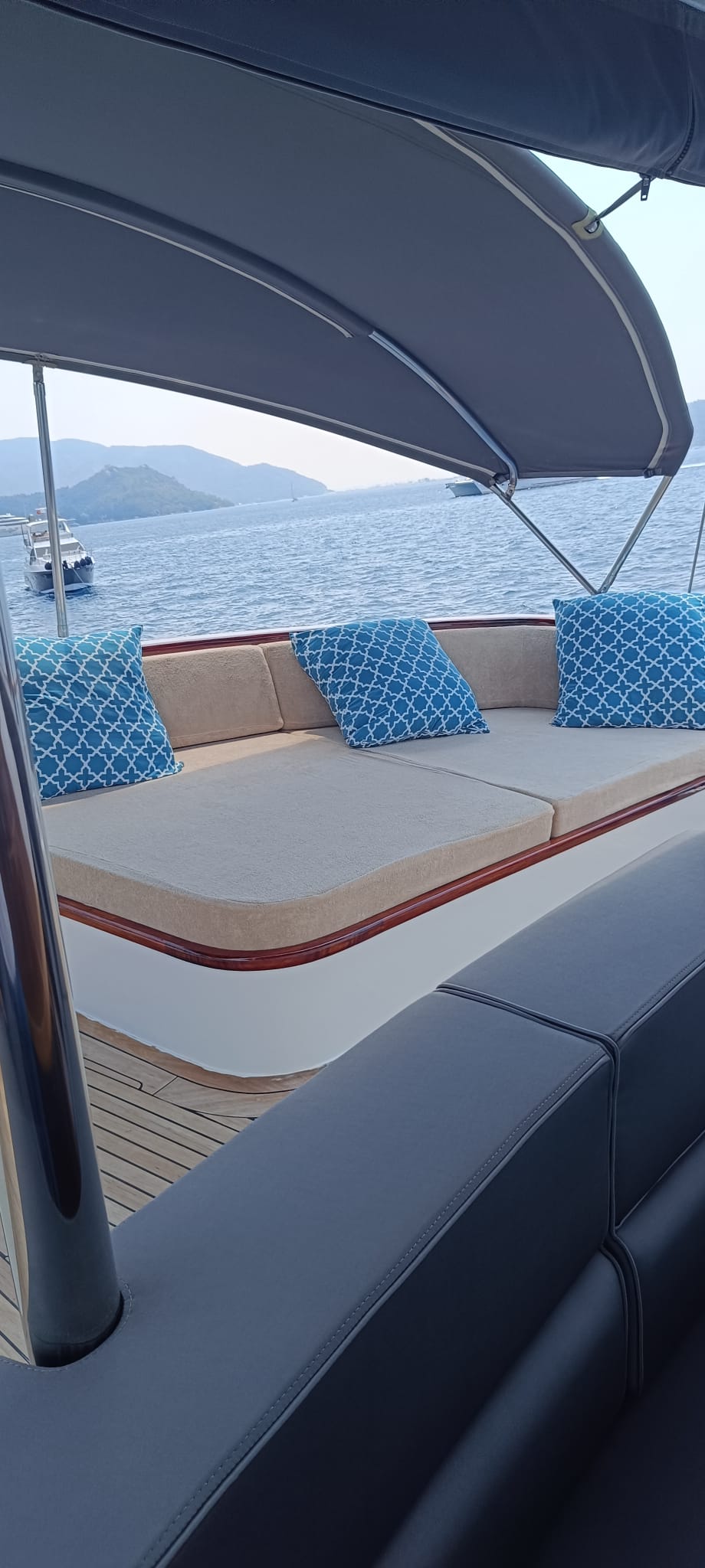 Halcon Del Mar teknesinin yelkeni, oturma grupları, yatak odası, döşemeleri tarafımızca yapılmıştır.