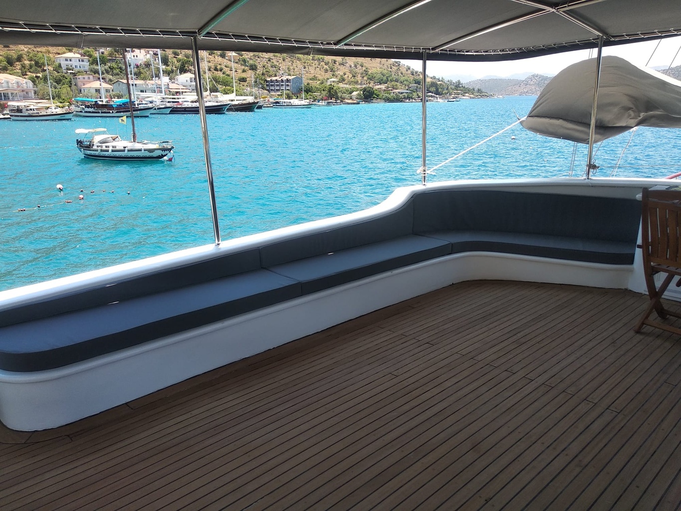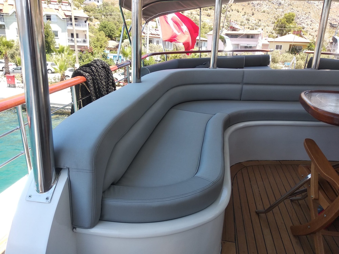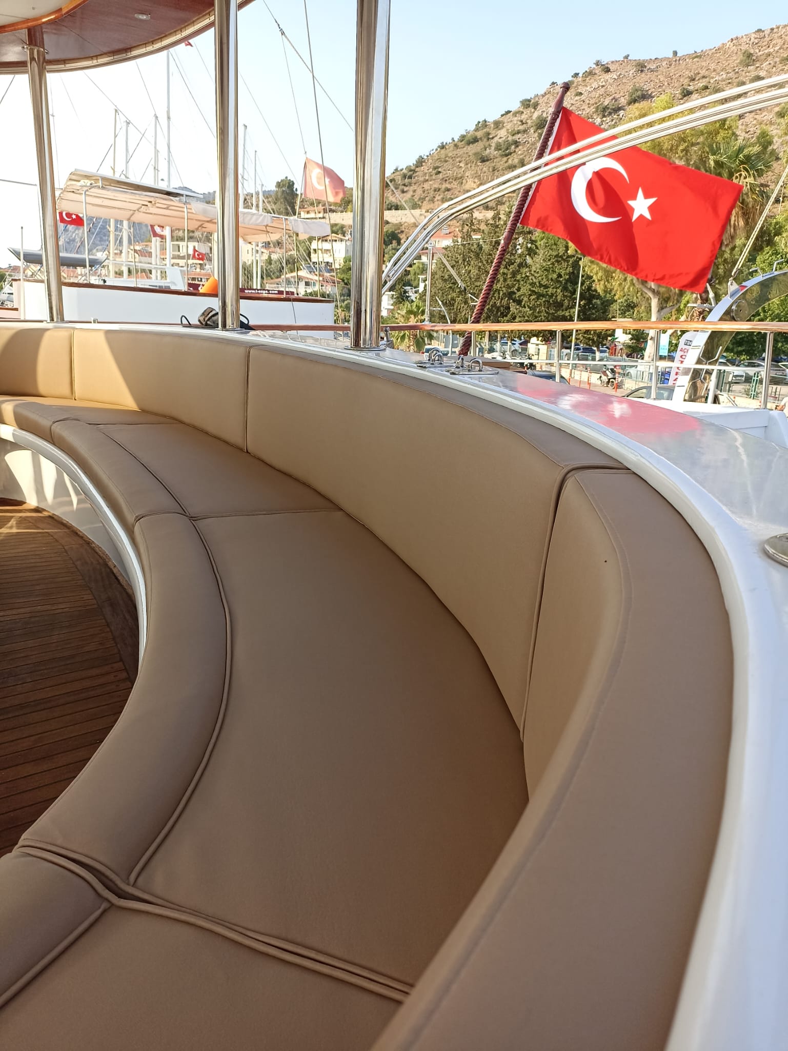Kocaoğlu 1 teknesinin yelkeni, oturma grupları, yatak odası, döşemeleri tarafımızca yapılmıştır.